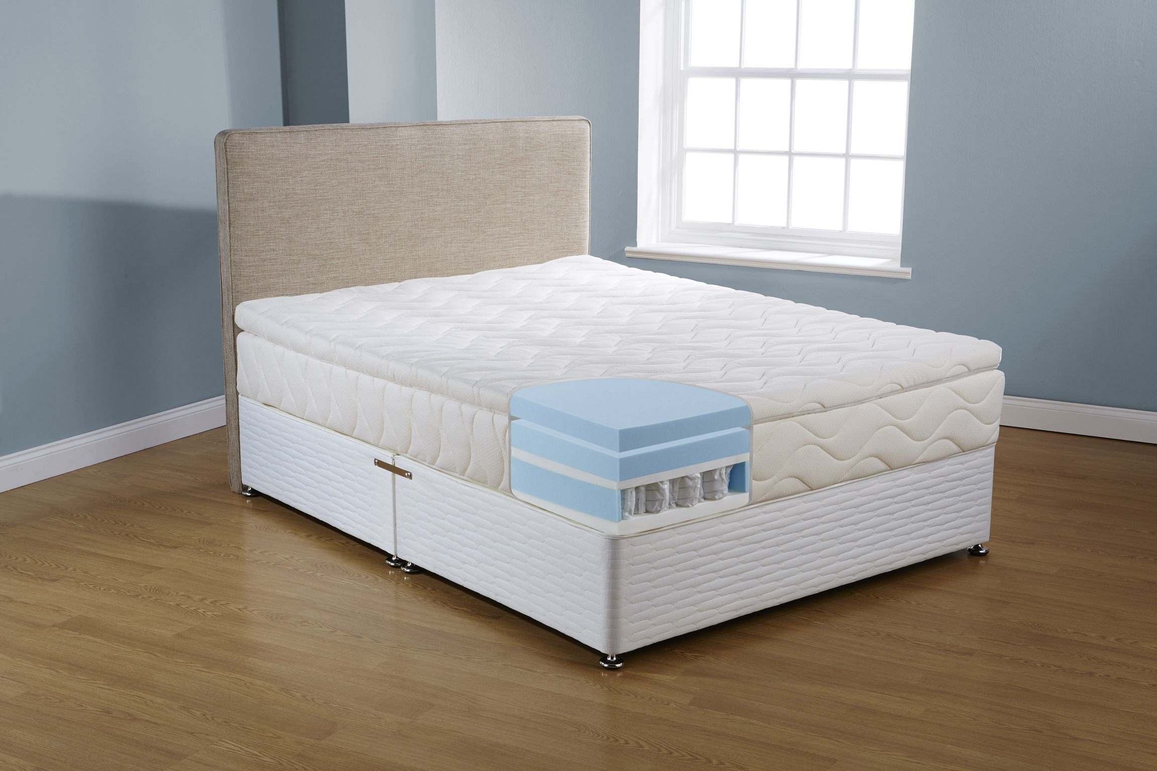– 7.5cm of heat dispersing 70kg density Coolblue Foam topper